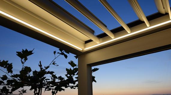 Grâce aux lames orientables en aluminium automatisées, vous dosez l'ensoleillement à la perfection. En position fermées, elles vous protègent de la pluie et l'eau s'écoule dans les poteaux.
